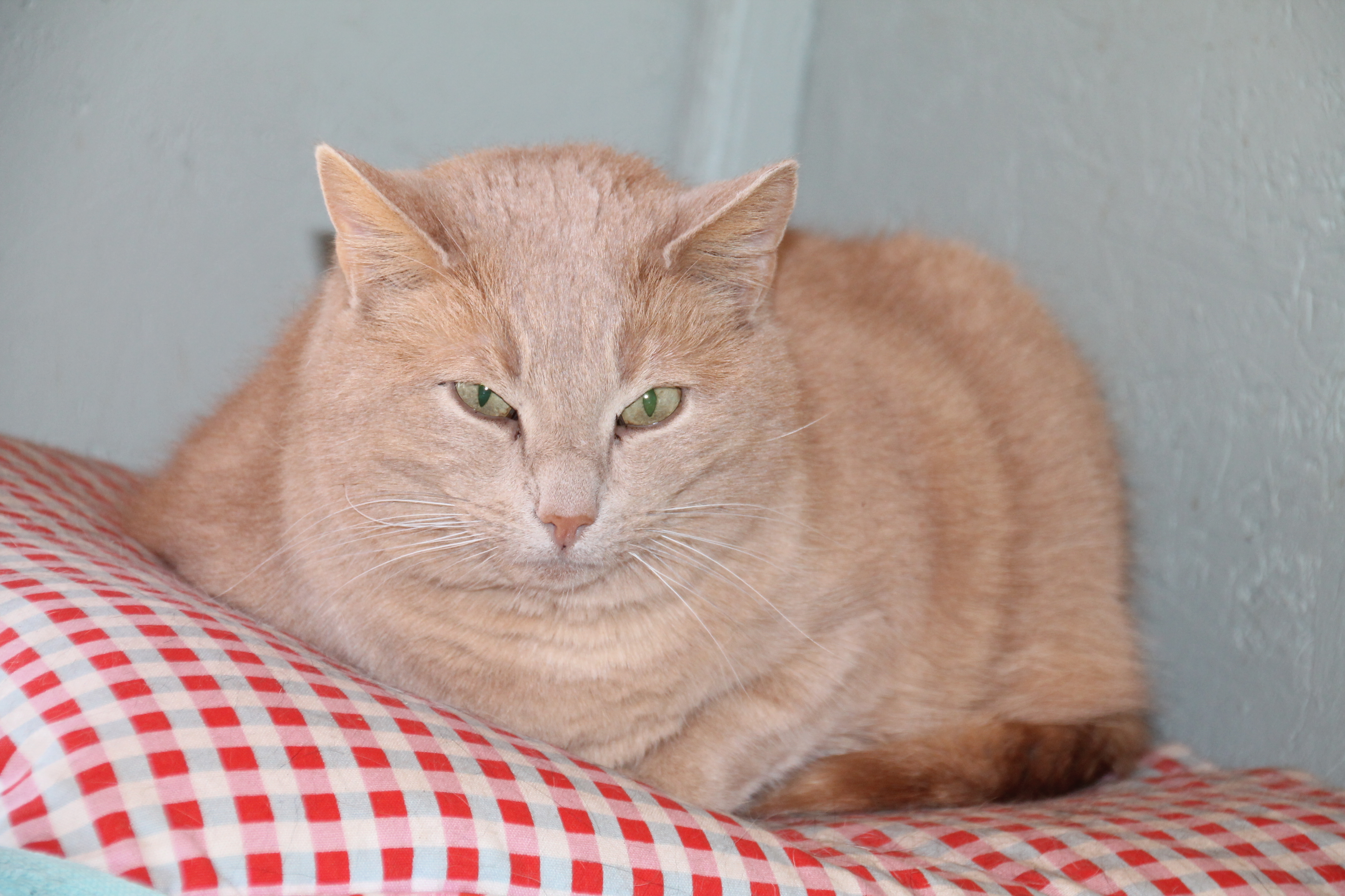 Cremefärgad hane, gått hemlös i Gyttorp. Bråkade med andra katter i området och togs omhand av en kvinna, där Benjamin bott i 1,5 år. Var i början skygg och rädd för människor, men har utvecklats mycket under denna tid. Går bra att klappa och hantera försiktigt, vill inte att man är för påträngande.