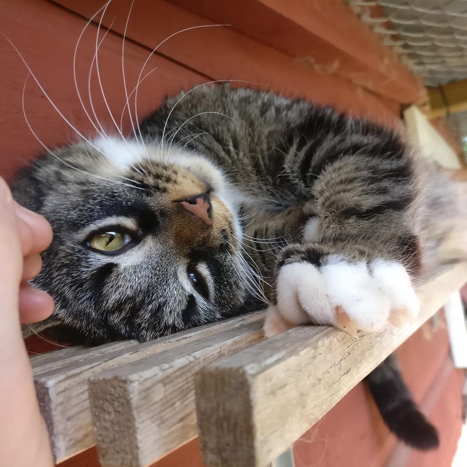 Nemo har tidigare varit utekatt i stadsmiljö, vilket ledde till osämja mellan grannar. Grannar upplevde Nemo aggressiv, vilket hans husse aldrig upplevt. Husse började överväga avlivning, då vi istället erbjöd en plats hos oss. Nemo landade snabbt på djurhemmet, och har aldrig visat något som helst aggression. Troligen har Nemo bara varit missförstådd.