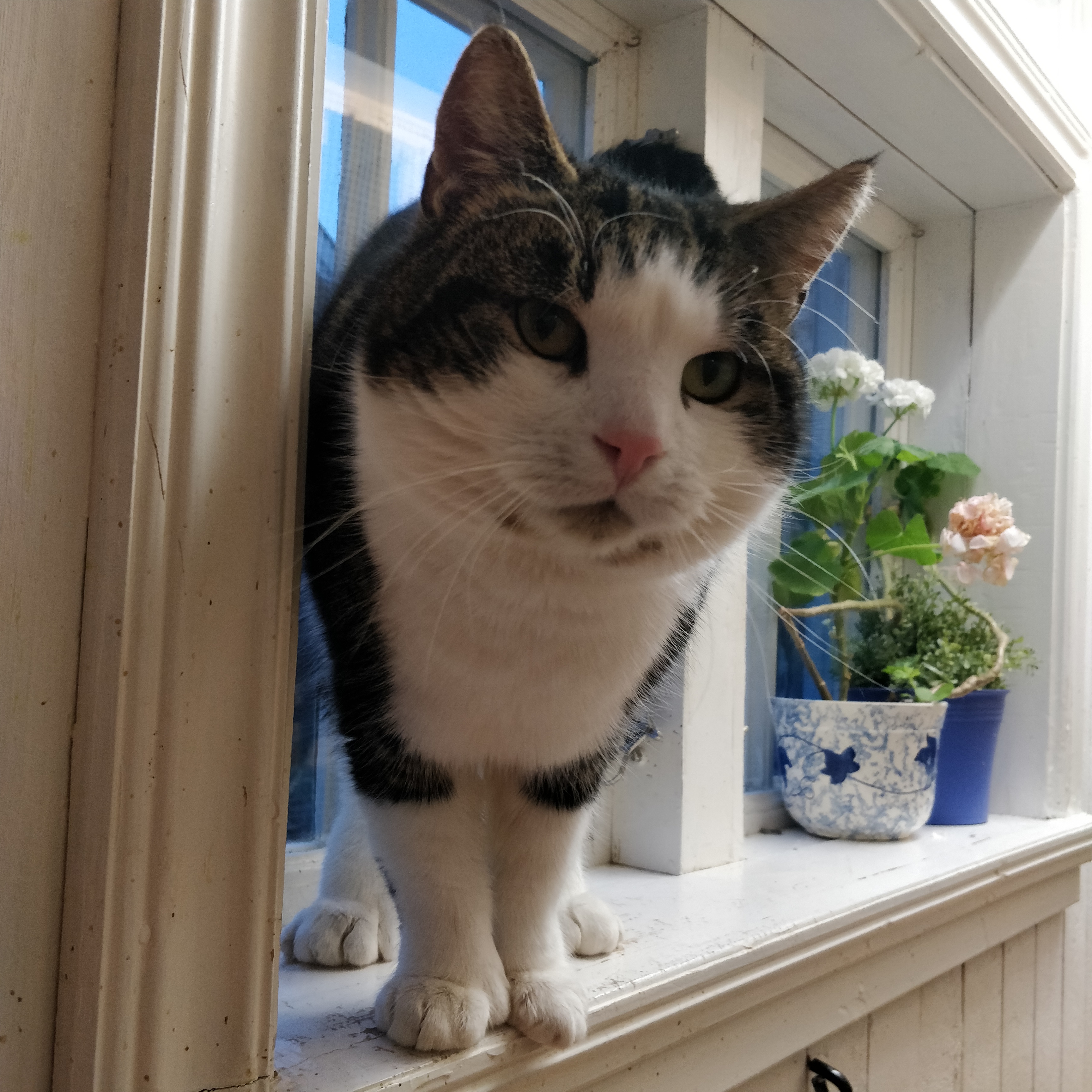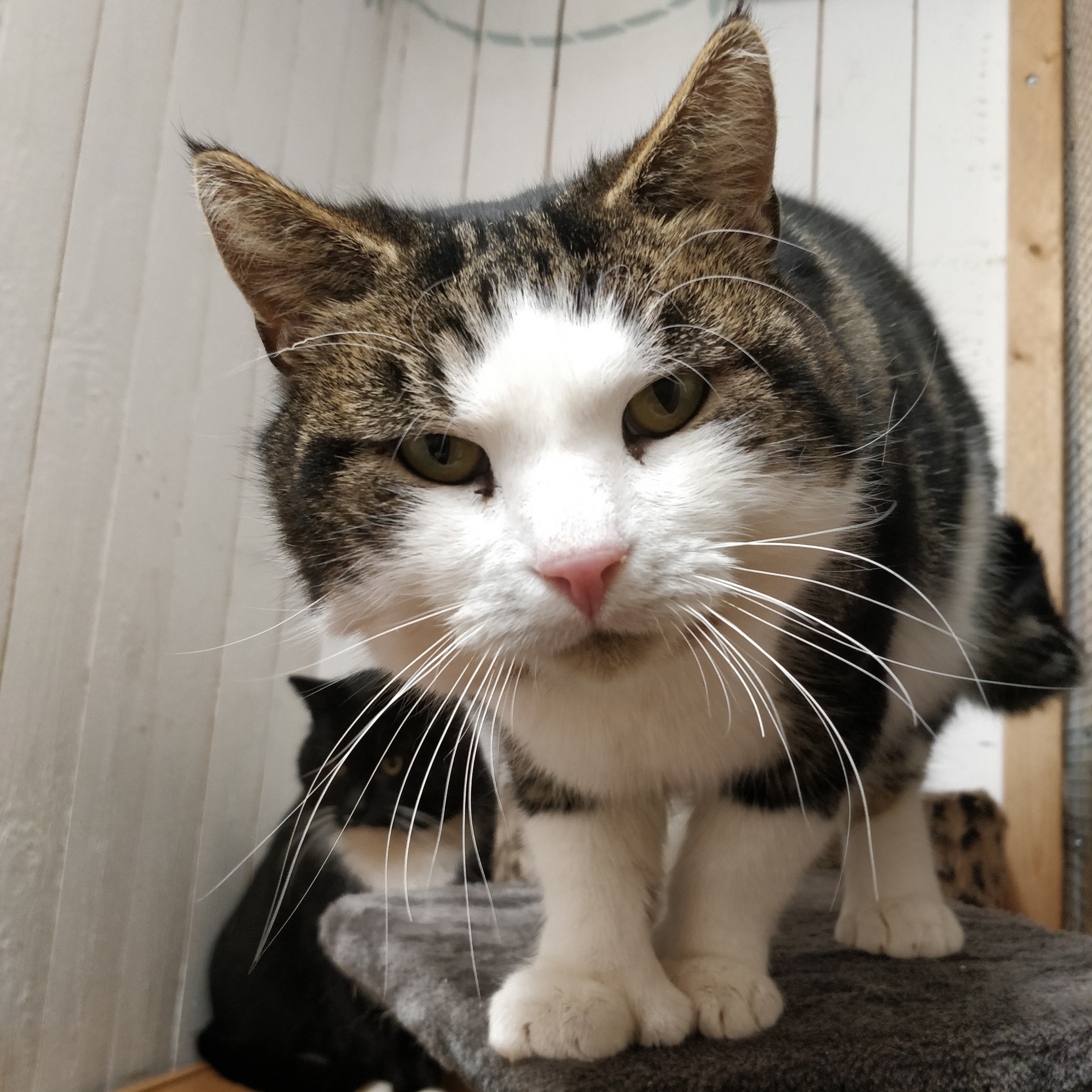 Social, trygg och kelig kille som behövde lämna sitt hem av skäl som inte hade med honom att göra. Van att gå ut och in som han vill. Har tidigare varit ensamkatt, men har träffat andra katter hos oss, vilket fungerat bra.